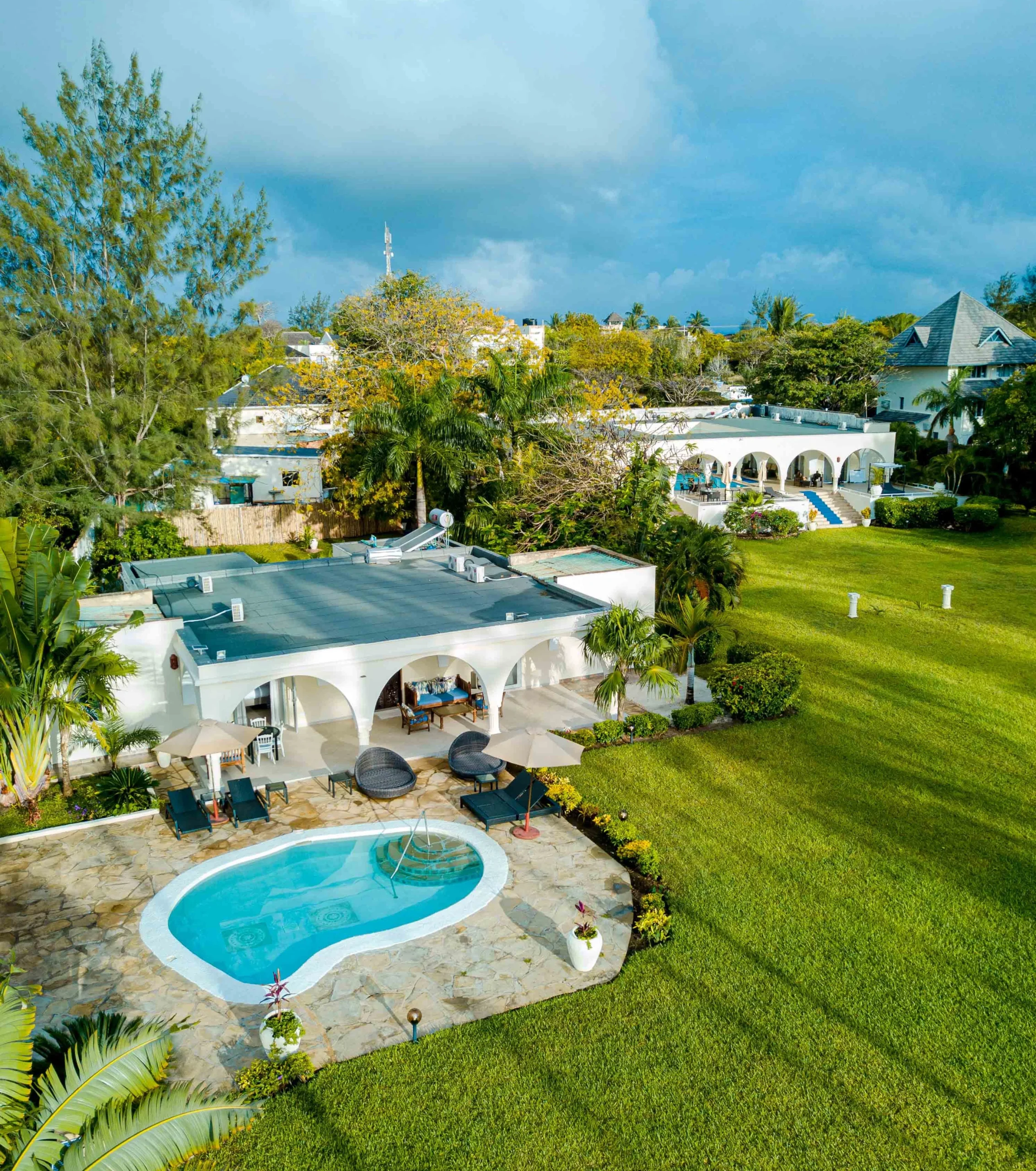 Mzima Beach Front Villa is the charming little sister of the Mzima Main House, sharing the same Moroccan-inspired flair in a more intimate and serene setting. Designed for smaller families or groups, this three-bedroom villa is perfect for guests seeking privacy, calm, and a personal space to simply be.
